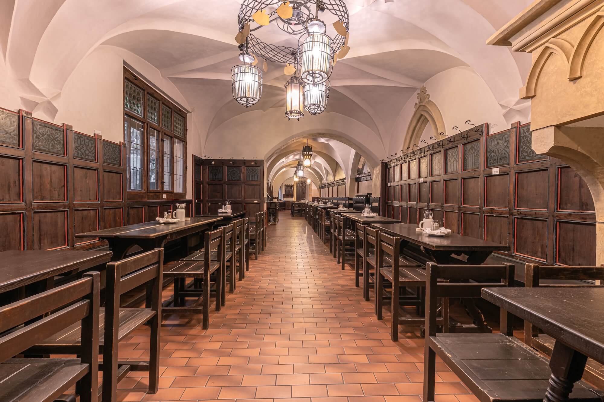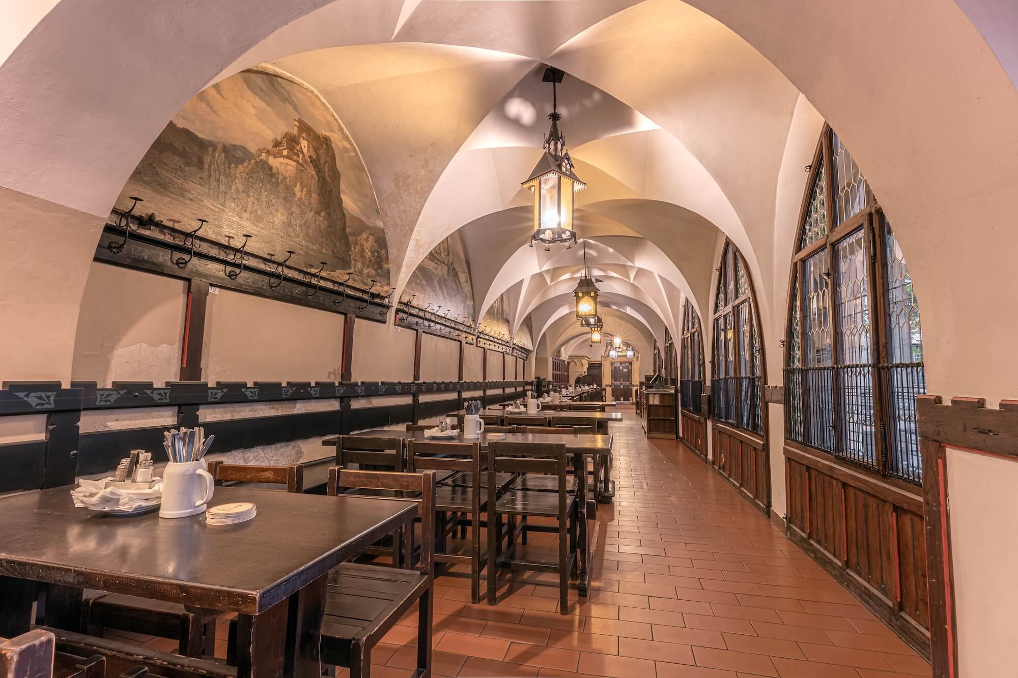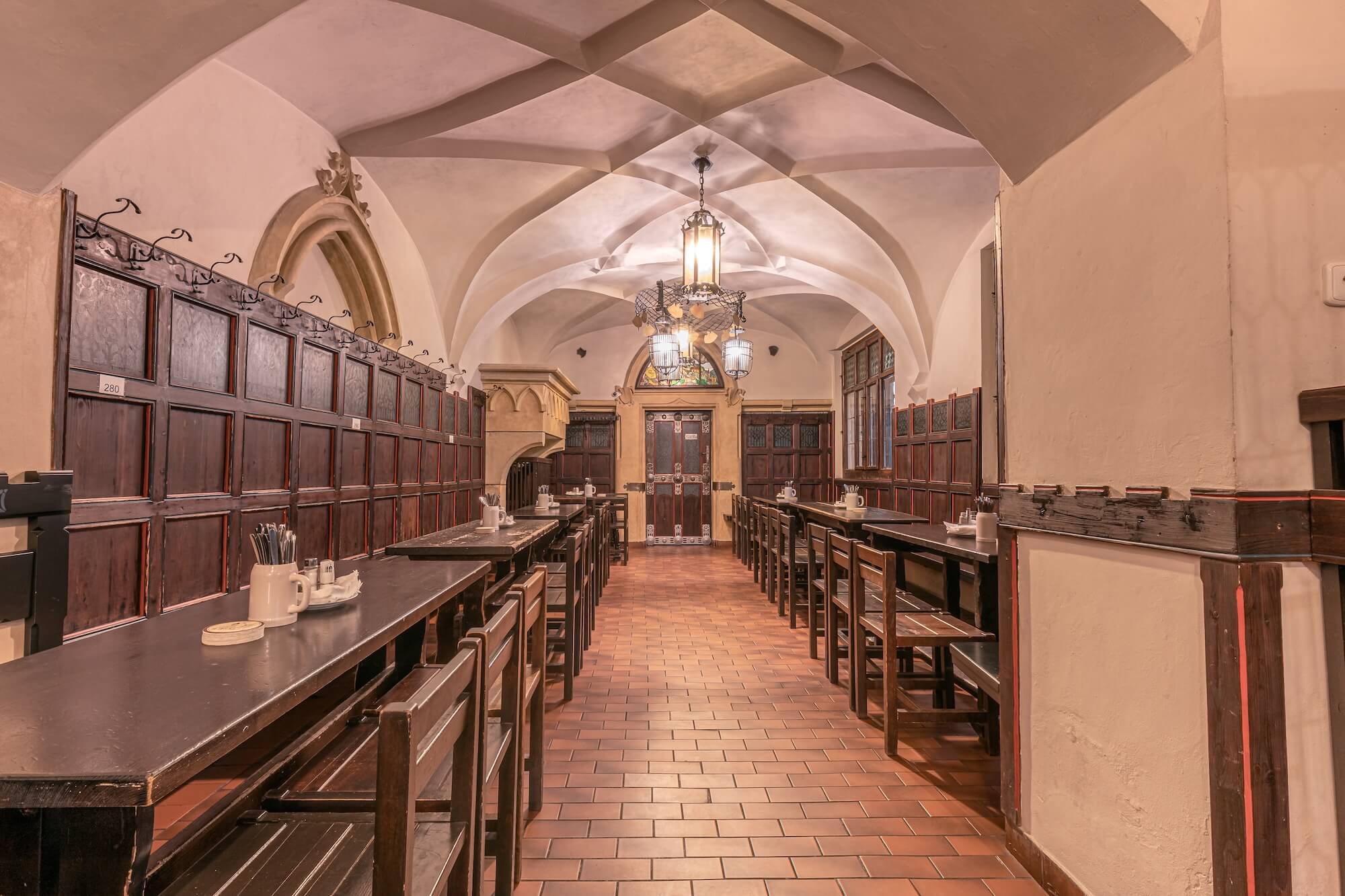 Der Saal „Leberwurst“ ist eine lange ehemalige Veranda mit gotischen Bogen und einem Diamantgewölbe. Die Fenster in der ganzen Länge führen in den Garten. Die einzigartige Atmosphäre wird durch Beleuchtung in der Form der mittelalterlichen Türmer verstärkt. Die Kapazität des Saales „Leberwurst“ ist 85 Sitzplätze.